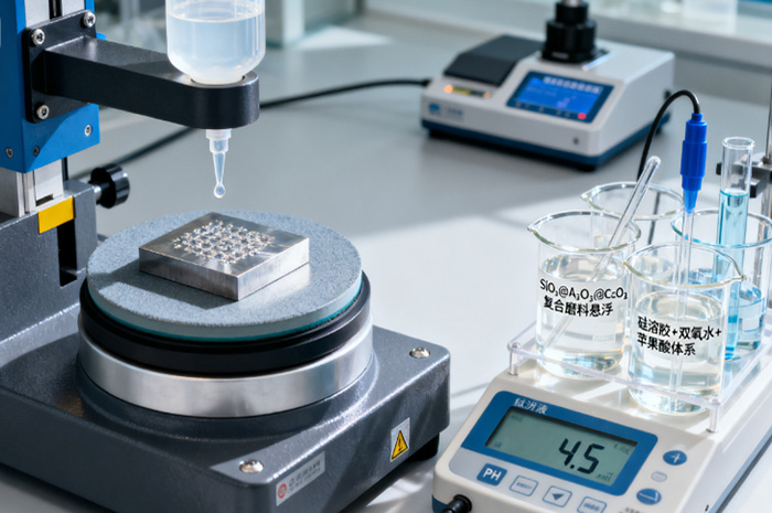 对于要求极高的应用,如医疗植入物,传统机械抛光可能不足。新型光催化化学机械抛光(PCMP)技术采用SiO₂Al₂O₃CeO₂复合磨料,能使钛合金表面粗糙度(Sa)达到0.286nm,材料去除率高达20.58μm/h,实现了低粗糙度和高材料去除率的双重目标。